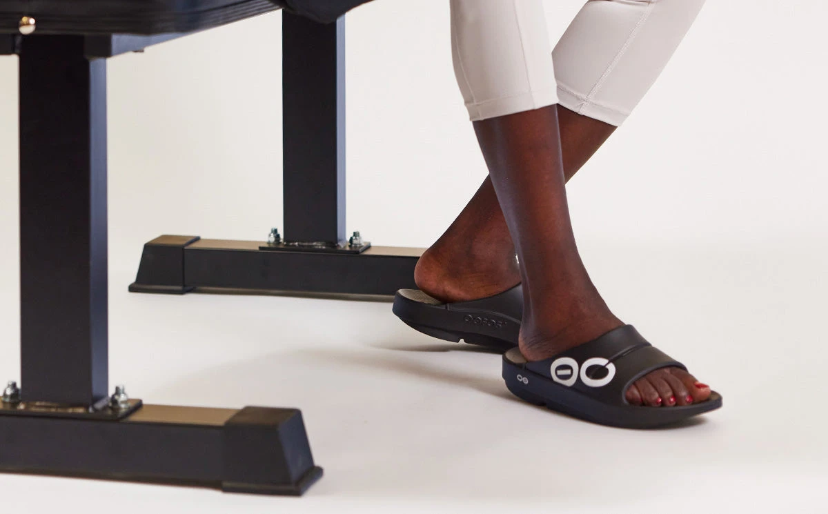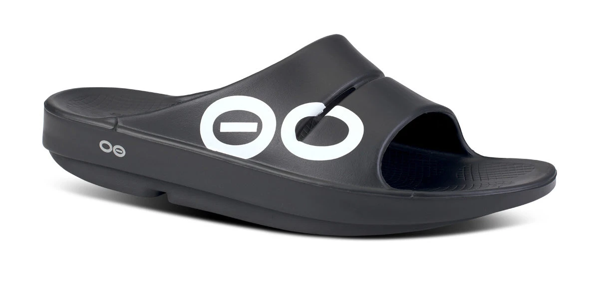 OOfos Women’s OOahh Sport Slide Sandal – Black White